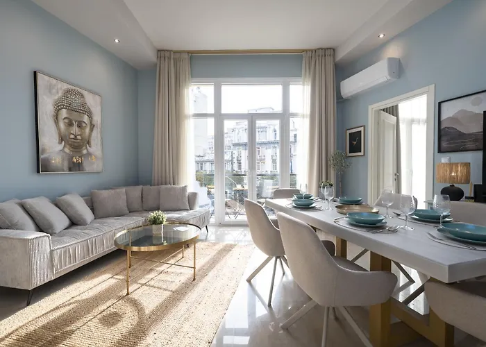 La propriété Ant-One Designer Neo-Classical Apartment In Prime Downtown Location - Sleeps 8 propose des équipements indépendants, tels qu'une cuisine équipée et un coin repas pour le confort des clients. Vous pourrez également prendre un bus à l'arrêt de bus Antigonidon, située à seulement 5 minutes de marche, pour explorer le reste de Thessalonique.